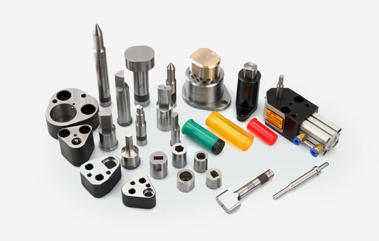 包括汽车模具零部件及其他精密模具零部件,如冲孔组件、滑动导向组件、斜楔部件、刻印部品、弹性元件等系列产品,同时为用户提供解决方案,例如:高强度板材的冲孔(≥860mpa)、厚板冲孔(≥10mm)、特殊板材(铝合金,不锈钢)冲压等。